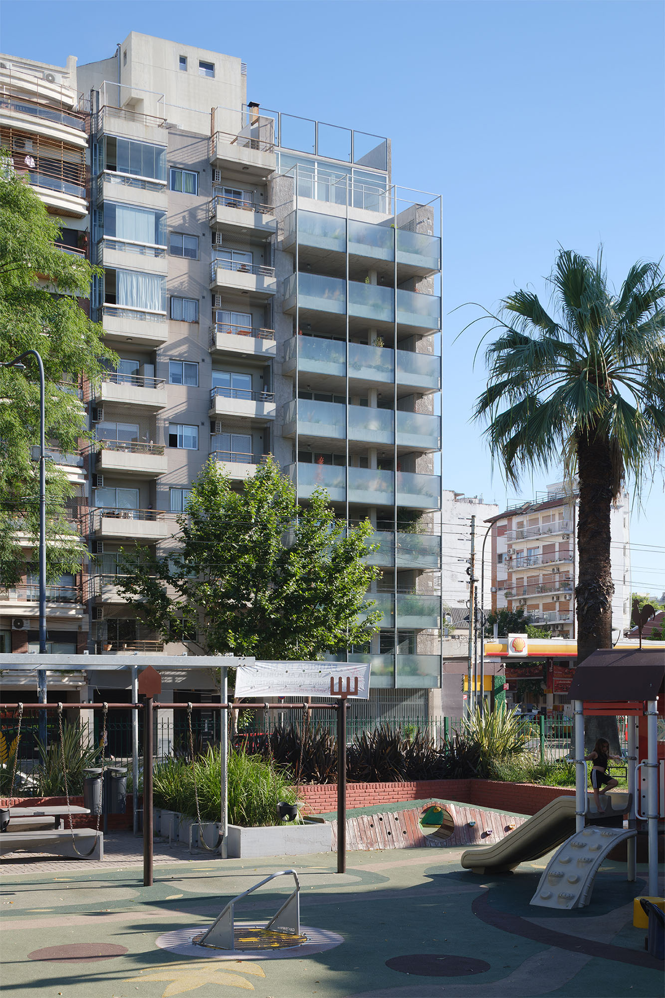 A series of horizontal displacements tightly related to the urban landscape trigger the appearance of a system of spaces destined for social encounters, thus reinforcing the link between tower dwellers and the city of Buenos Aires.