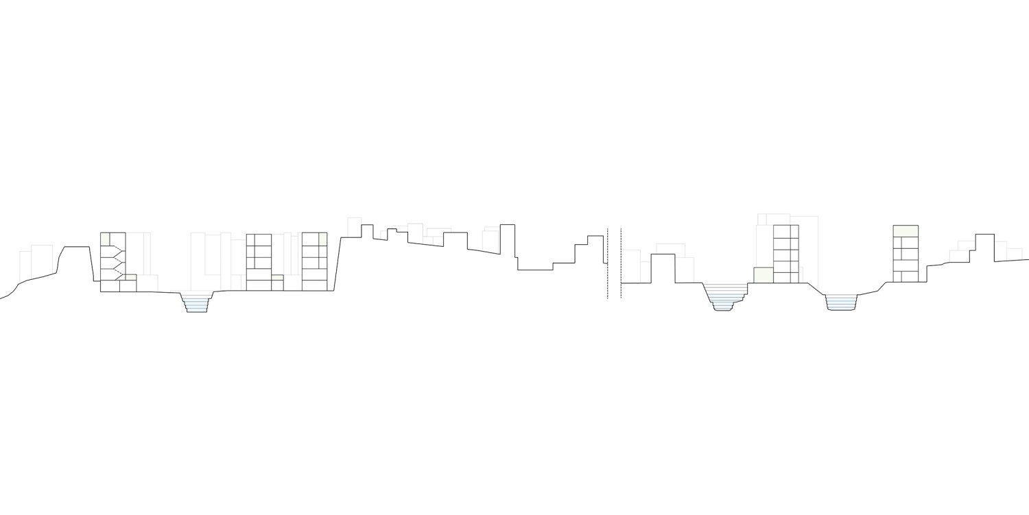 The first block of the Civic Center of Puertos seeks to anticipate a model of a pedestrian city with a permanent programmatic pulse based on a new balance between density and landscape. It will be the first piece of a twelve-hectare territorial essay that seeks to present itself as an alternative model for inhabiting the periphery. Three buildings absorb this agenda, assuming a definitive role in activating the urban space they delimit.