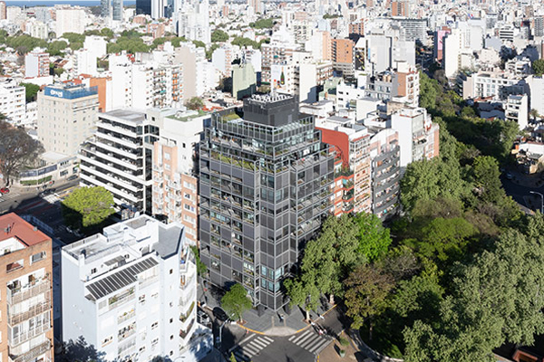 The O'Higgins 1625 tower seeks to integrate the two traditions by stacking houses wrapped in landscaped galleries, which reproduce the same sequence offered by the old mansions. A light and reflective envelope takes up the visual order of the first curtain walls in the neighborhood, now superimposed on abundant vegetation that displaces the crystals towards the interior of the floor plan, radically modifying the perception of the whole.